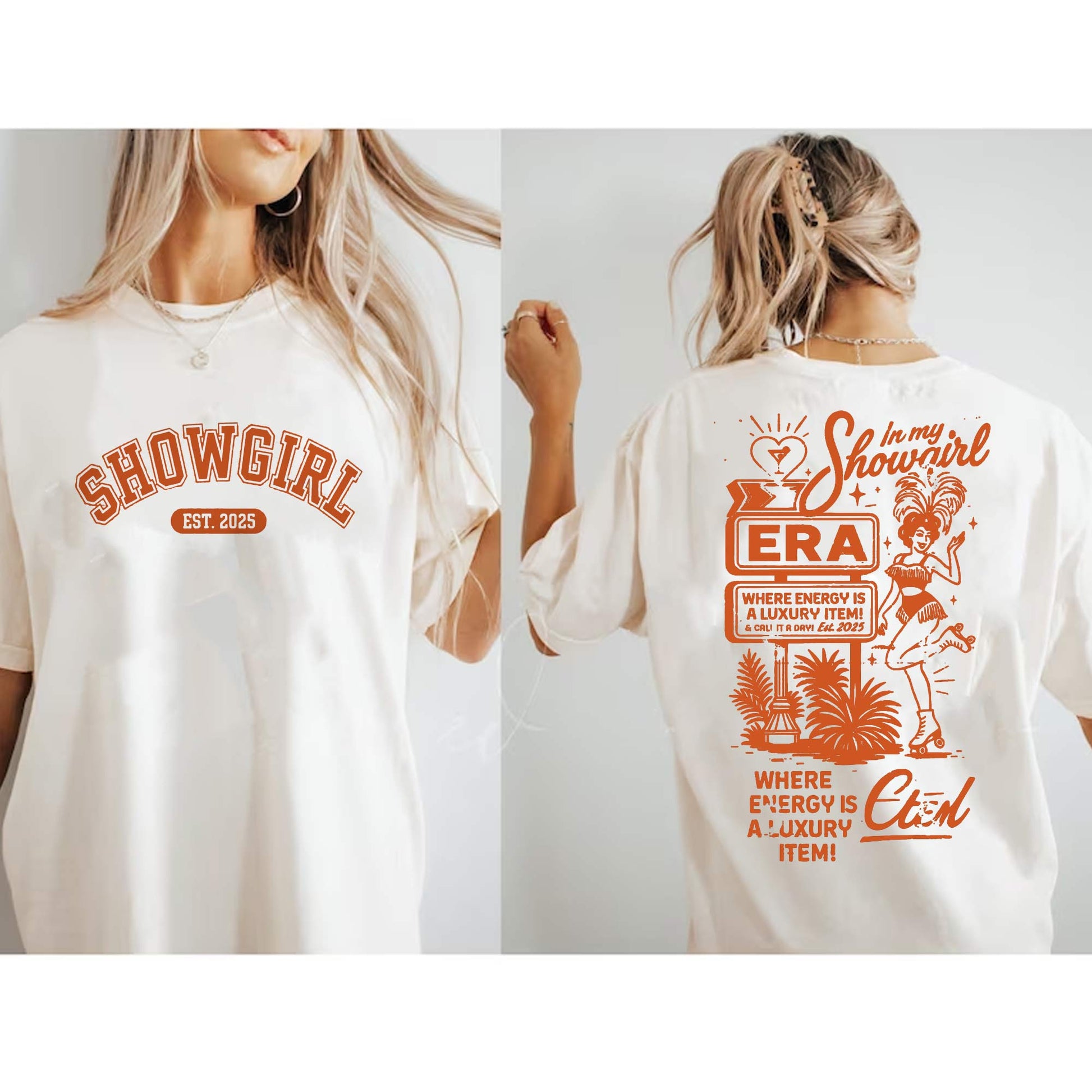 2 Sides Showgirl EST 2025 Shirt, Orange Showgirl Era Sweatshirt