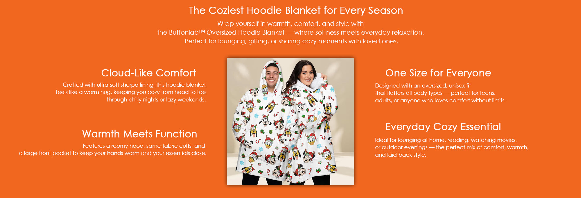 With vibrant all-over prints that stay bright and durable through countless wears, this blanket hoodie combines comfort, function, and personality — perfect for lazy Sundays, camping nights, or cozy movie marathons.