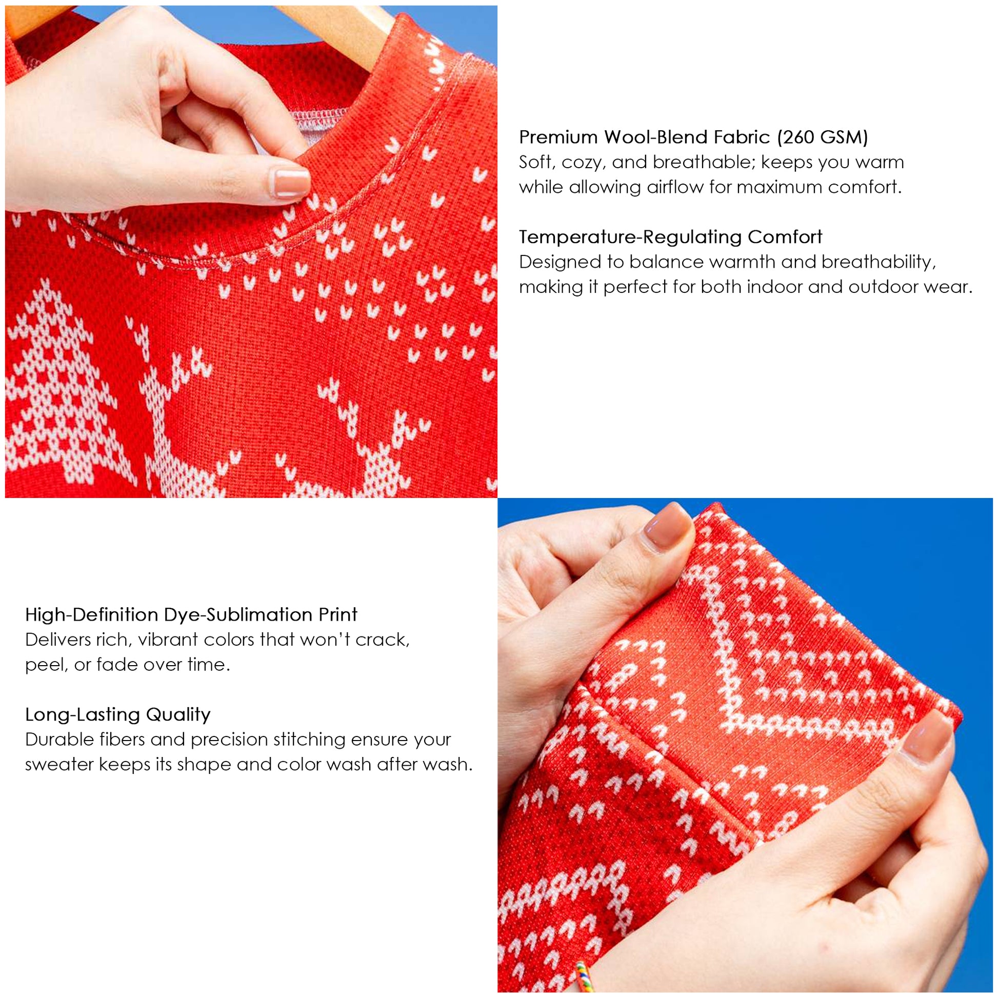 ✔️ Premium Fabric: Made from a high-quality acrylic wool blend — soft, breathable, and temperature-regulating for all-day comfort.